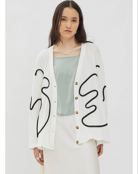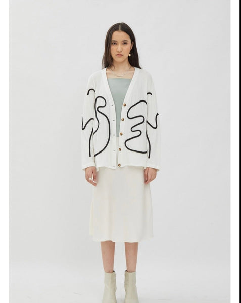 Long sleeves V-neck cardigan with front buttons and front pattern